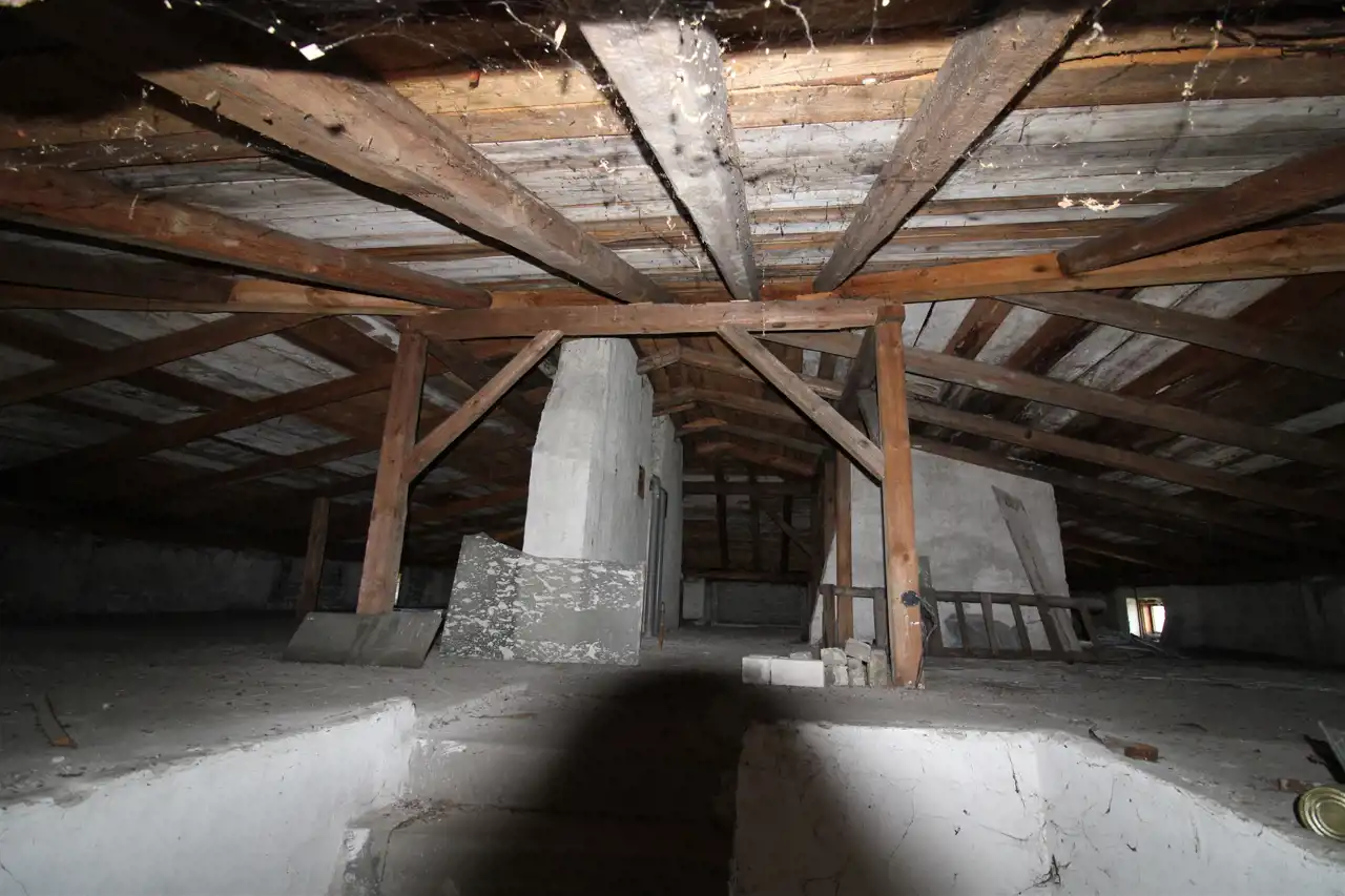 Dom posiada strych, dach pokryty eternitem, okna drewniane, na podłogach deski. Posesja ogrodzona, za domem znajduje się budynek gospodarczy oraz sad z drzewami owocowymi.