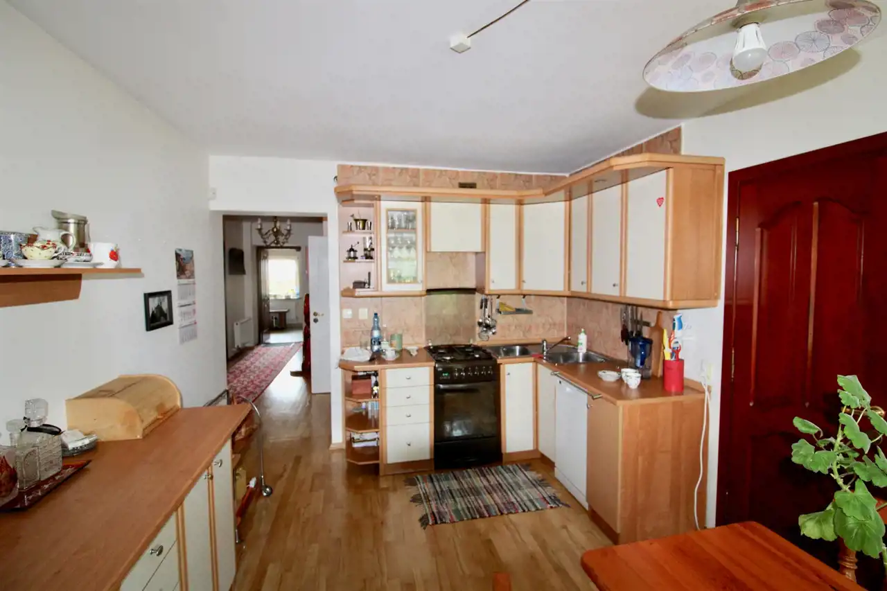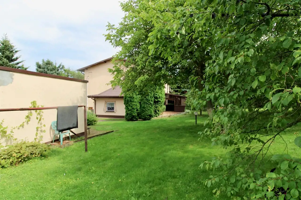 Dom 2-kondygnacyjny z poddaszem użytkowym, na działce także duży budynek garażowy 115 m2 na 2 pojazdy wraz z pomieszczeniem gospodarczym.