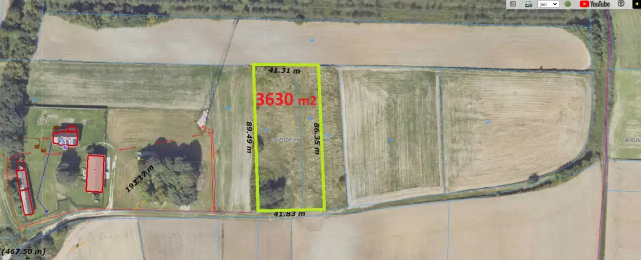 - Działka dwa nr ewidencyjne: nr ewidencyjny 587 o pow. 2473m2 i nr 588 o pow. 1157 m2 .
