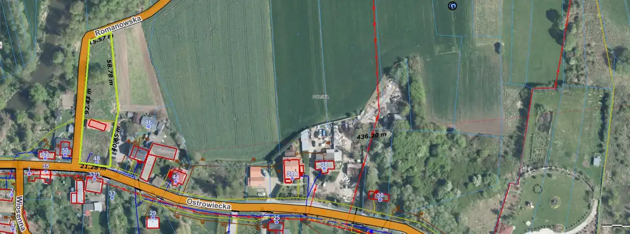 - Działka nr ewidencyjny 1053 obręb 04, kształt wielokąt. Działka narożna z dostępem do drogi asfaltowej ul. Ostrowieckiej 21m. i gruntowej ul. Romanowskiej około 92m., delikatnie pochyła. Działka od ul. Ostrowieckiej ogrodzona siatką.