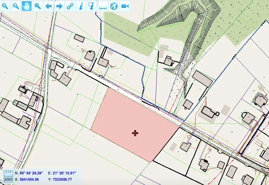- Media Woda: w ulicy; Kanalizacja: brak; Prąd: na działce; Gaz: brak