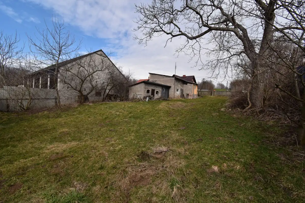 - A plot of land with an area of 11,700 sqm (1.17 ha): with a house of approximately 50 sqm and agricultural buildings and a barn with an area of approximately 100 sqm. The house was built in the 1970s, is made of brick and is in a state of disrepair. The barn is wooden, with one side made of brick. The shape of the plot is similar to a trapezoid. The dimensions of the plot (approximately): 21.4 m (width at the front) x 615 m x 15 x 615 m. Utilities: