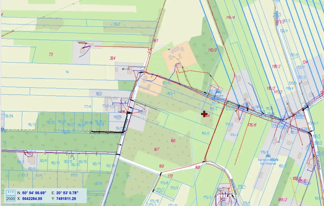 - Media Woda: w ulicy; Kanalizacja: w ulicy; Prąd: na sąsiedniej działce; Gaz: brak