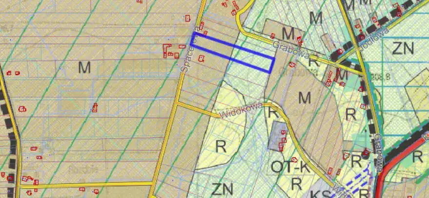 The plot is not covered by a Local Spatial Development Plan. It is necessary to apply for zoning conditions (WZ). A watercourse runs through the rear part of the plot.