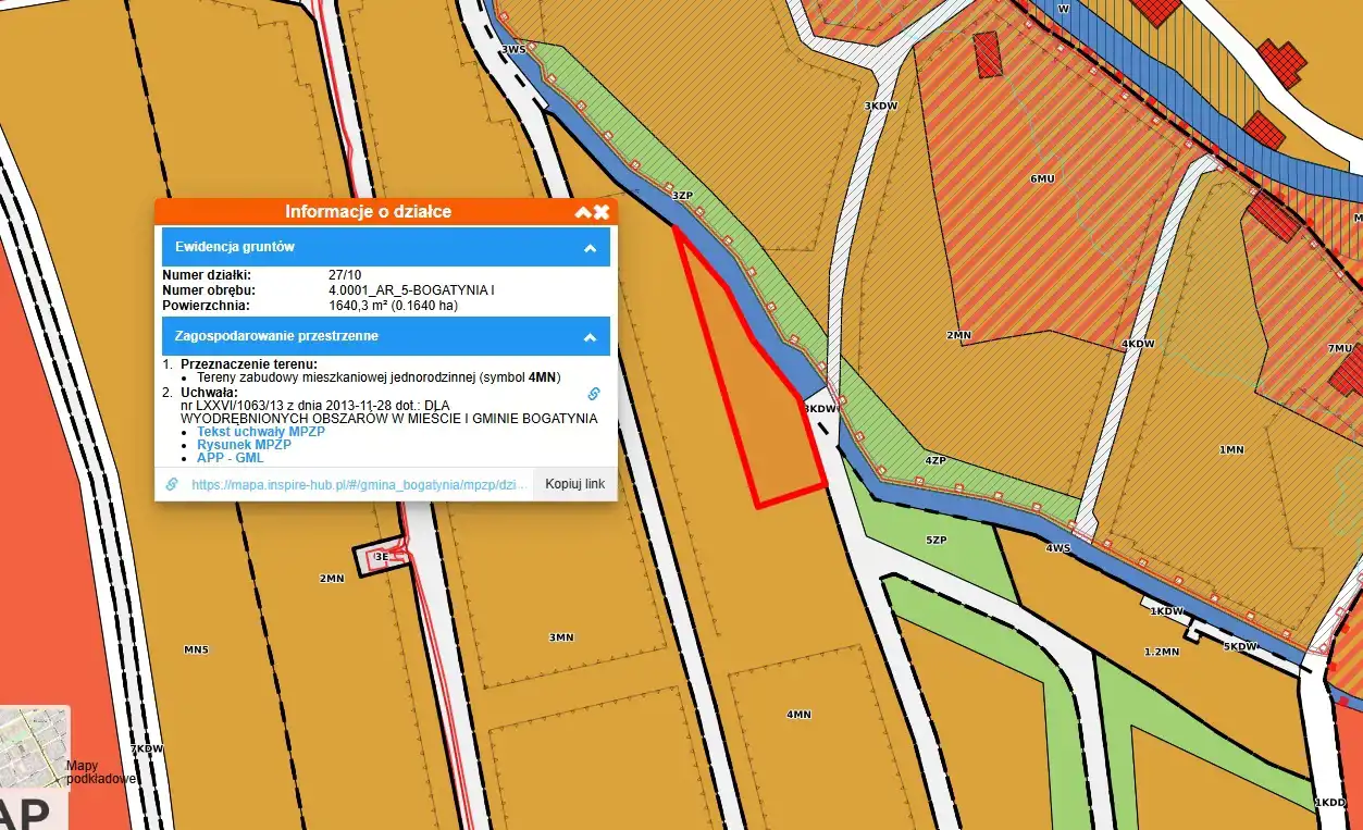 Działka płaska o nieregularnym kształcie, zwężającym się w kierunku północnym. Lokalne media: dostęp do sieci wodociągowej i energetycznej w drodze przy której położona jest działka. W miejscowym planie zagospodarowania przestrzennego teren oznaczony symbolem: 4MN - tereny zabudowy mieszkaniowej jednorodzinnej.