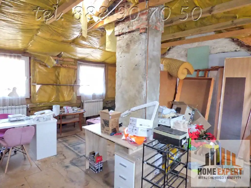 Nieruchomość o powierzchni użytkowej 86,05m2 składa się z wysokiego parteru, na którym znajdują się ganek, dwa ustawne pokoje z jednym z wyjściem na taras, kuchnia oraz WC, a także piętra ze strychem do własnej aranżacji z możliwością wydzielenia dwóch dodatkowych pokoi, co daje duży potencjał rozbudowy przestrzeni mieszkalnej;