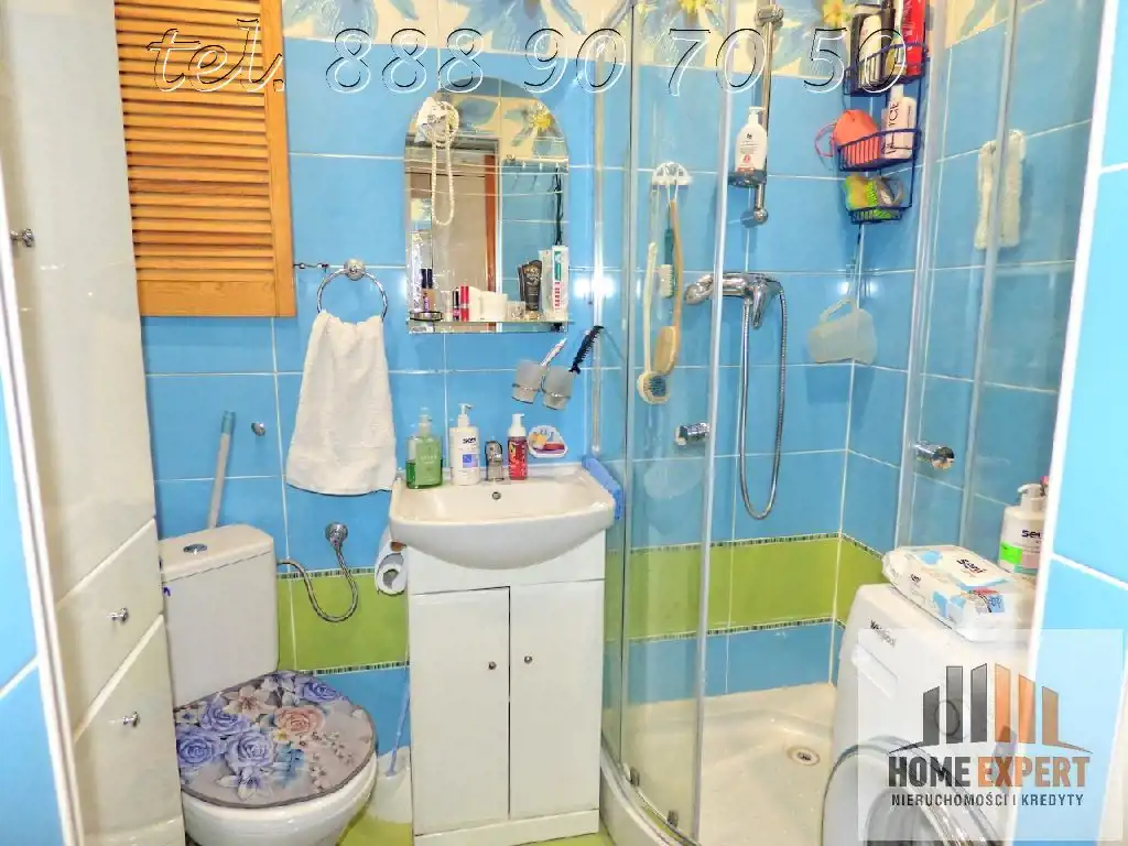 Blok jest ocieplony, klatka schodowa czysta i zadbana, a okolica spokojna i dobrze skomunikowana – w pobliżu znajdują się sklepy, szkoła, przedszkole, przystanek autobusowy i tereny zielone.