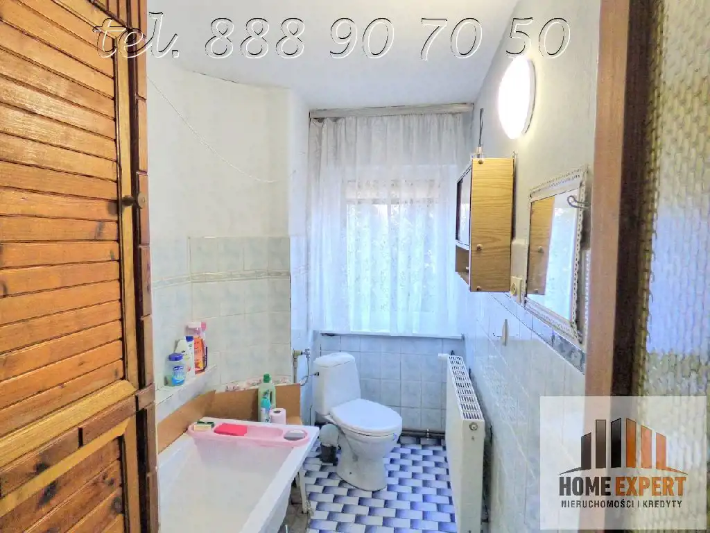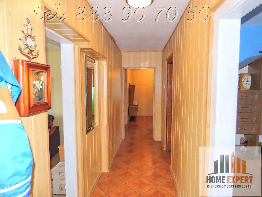 Lokal składa się z trzech ustawnych pokoi, oddzielnej kuchni, łazienki z WC oraz pomieszczenia gospodarczego, które z powodzeniem można zaadaptować na czwarty pokój, biuro lub pojemną garderobę, co daje realną możliwość zwiększenia funkcjonalności mieszkania bez kosztownej rozbudowy. Mieszkanie jest w średnim stanie technicznym, ale nadaje się do zamieszkania od razu – część okien została wymieniona na nowoczesne trzyszybowe, zamontowano rolety zewnętrzne, na podłogach znajdują się panele i kafle, a ściany wykończone są tynkami i tapetami.