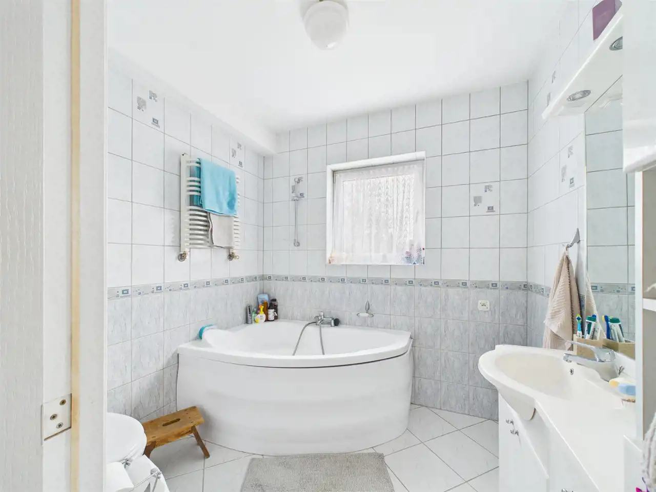 5. Łazienka w płytkach ceramicznych, wanna narożna, WC,