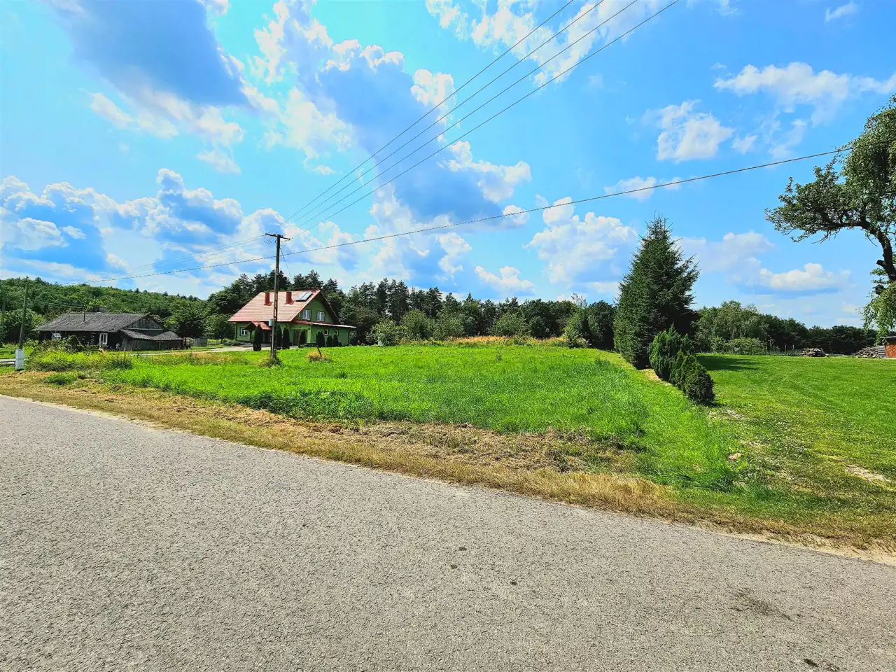 Prostokątny kształt działki o wymiarach 58 metrów na 28,5 metra daje wiele możliwości aranżacyjnych. Okolica charakteryzuje się luźną zabudową domów jednorodzinnych oraz przylegającymi polami. W bliskim sąsiedztwie znajduje się również malowniczy las, który zapewnia piękne widoki oraz sprzyja odpoczynkowi i aktywności na świeżym powietrzu.