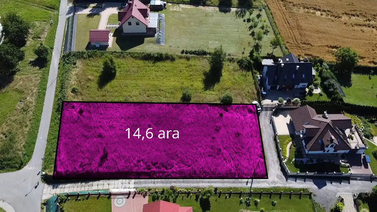 Powierzchnia: 14,6 ar (1460 m²) – kształt prostokątny, umożliwiający dogodne zagospodarowanie
