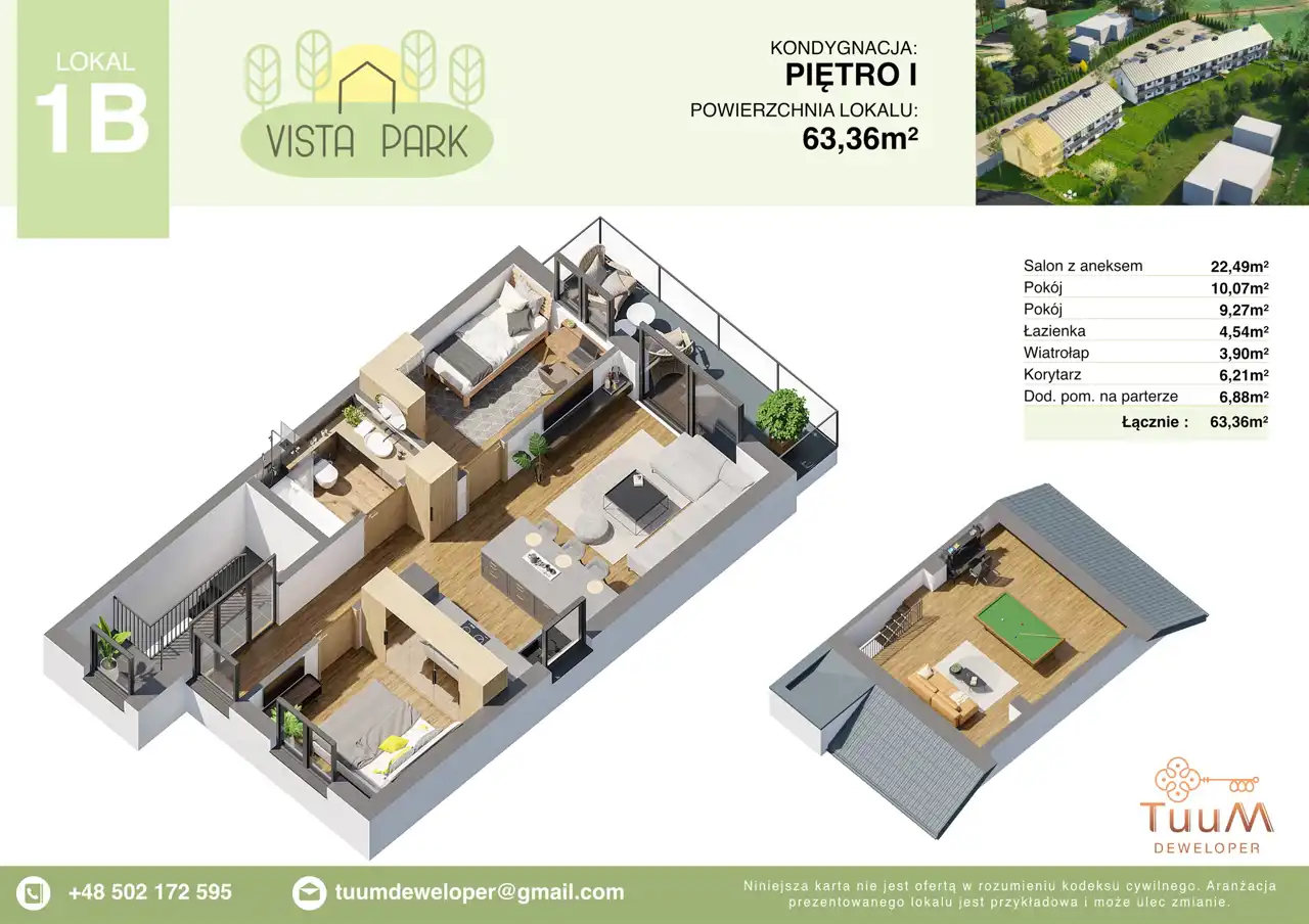 Dla mieszkań na piętrze oferujemy możliwość adaptacji poddasza, co zwiększa powierzchnię lokalu do 84,36m2