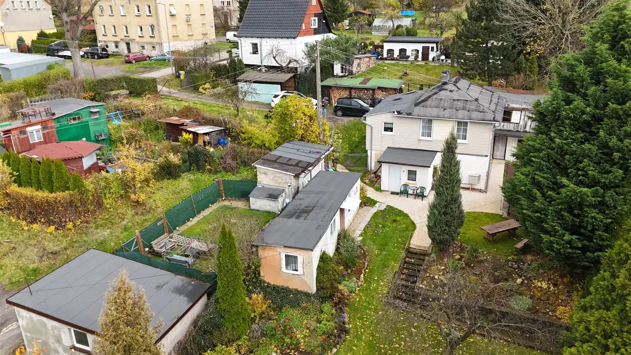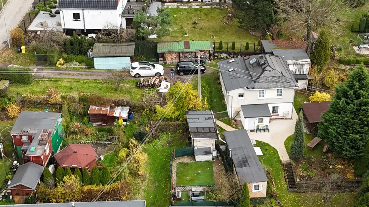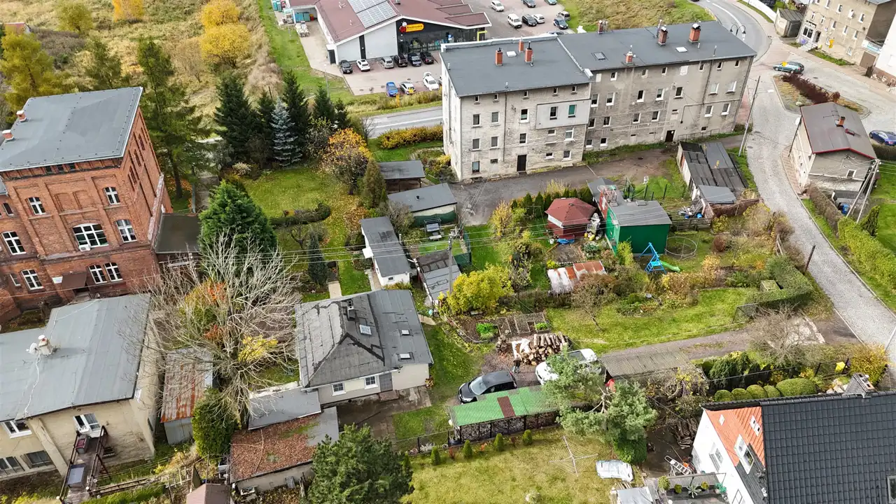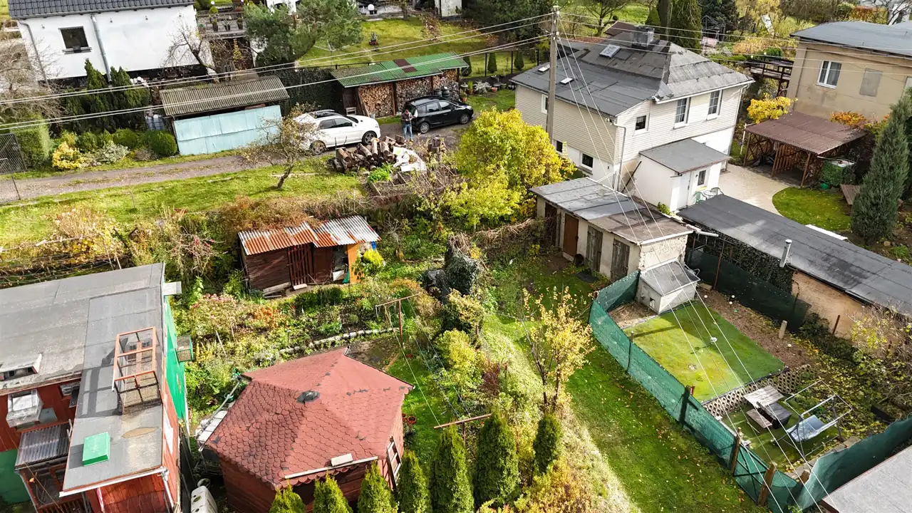 Dom jedno piętrowy o powierzchni użytkowej około 120 m2 podzielony jest obecnie na dwa mieszkania posiadające osobne niezależne wejścia.