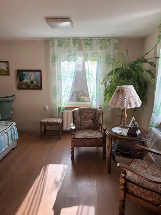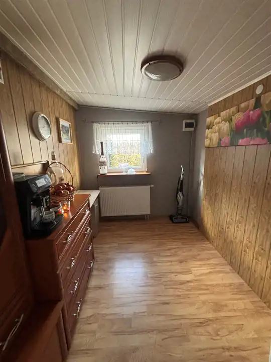 Standard pomieszczeń do odnowienia: stolarka okienna PCV, na ścianach gładzie, deska i tynk strukturalny, na podłogach panele i gres, instalacja gazowa w miedzi.