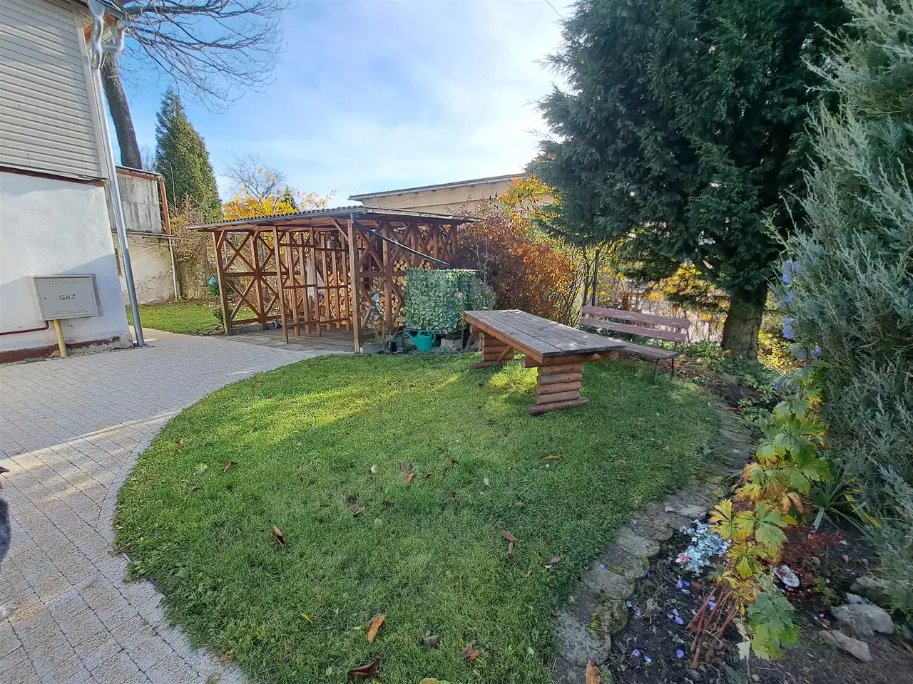 Na ogrodzie zostało wydzielone miejsce na grilla i odpoczynek,, mamy również do dyspozycji murowaną altanę z doprowadzonym prądem i wodą oraz garaż .