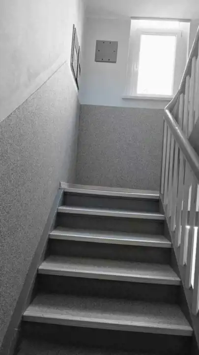 Dach oraz korytarz w budynku świeżo po remoncie. Z tyłu budynku tereny zielone. W pobliżu przedszkole, sklepy oraz przystanek autobusowy.