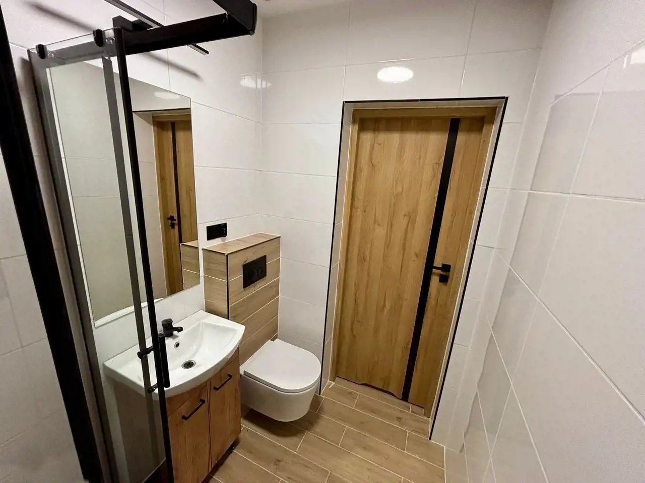 Nieruchomość składa się z przestronnego salonu z wyposażonym aneksem kuchennym, nowoczesnej i urządzonej łazienki, komfortowego przedpokoju oraz dużej sypialni w której znajduje się pojemna szafa w zabudowie z dużym lustrem