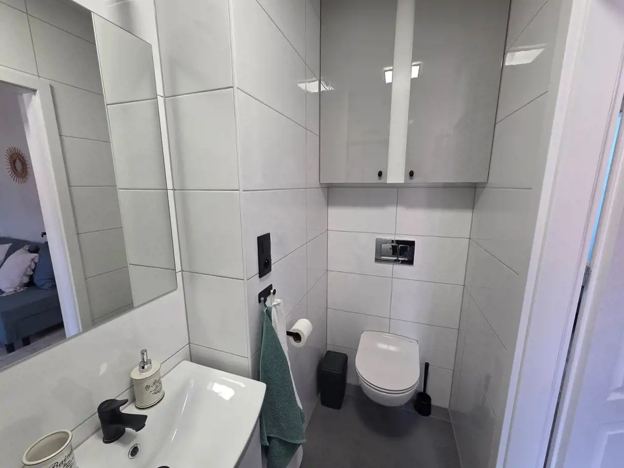 - łazienki z wc, z nowym, oszczędnym piecem De Dietrich