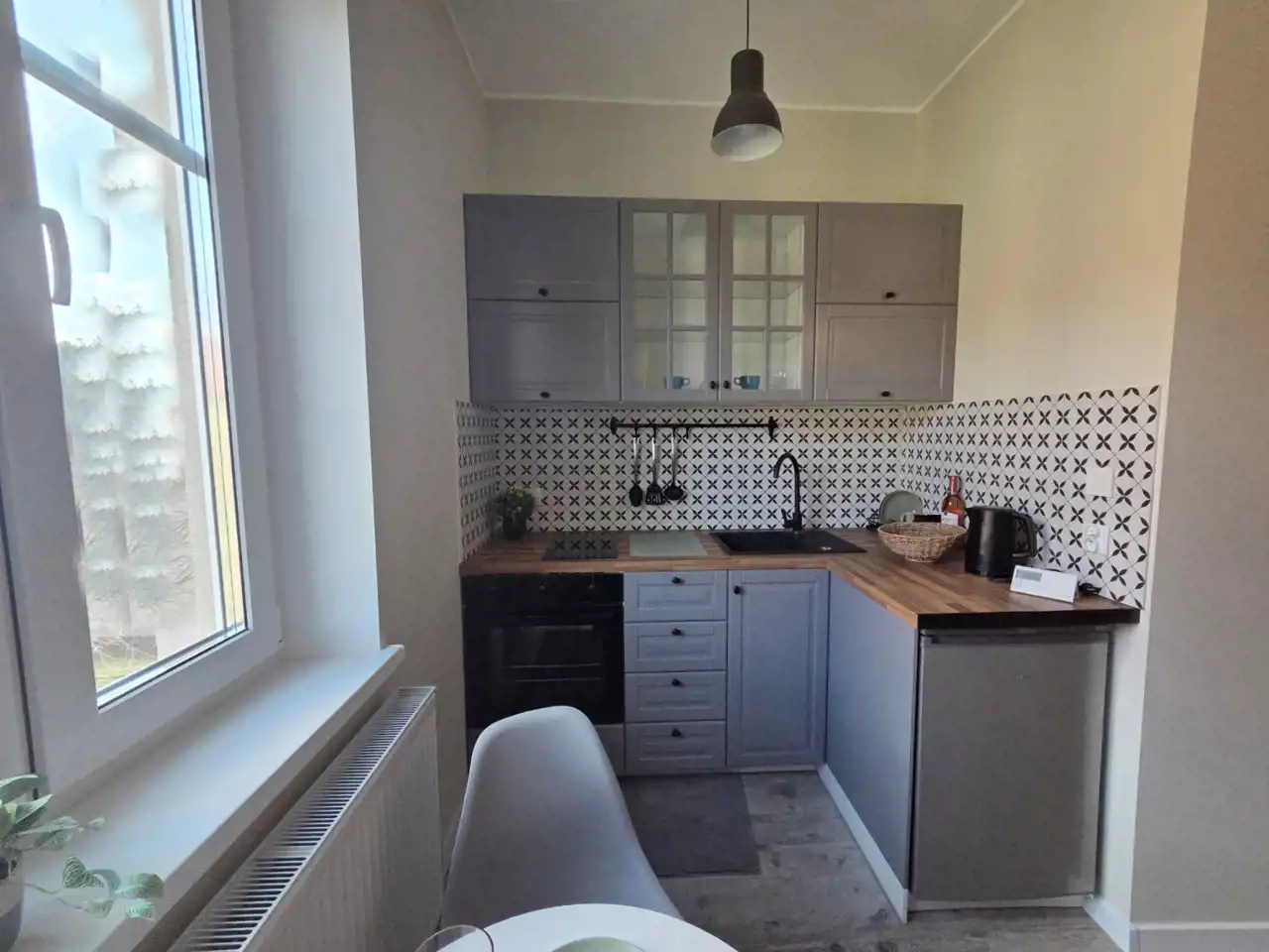 - salonu z aneksem kuchennym (nowoczesna kuchnia z meblami z IKEA i sprzętem AGD)
