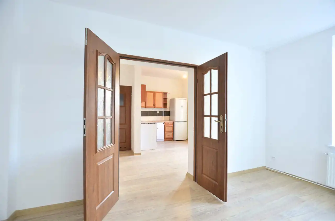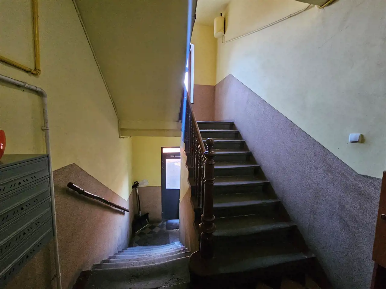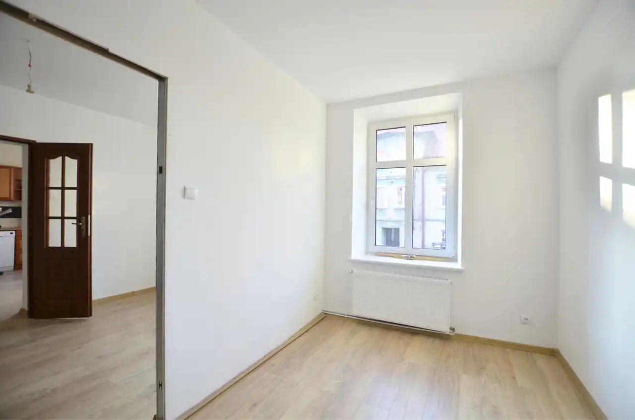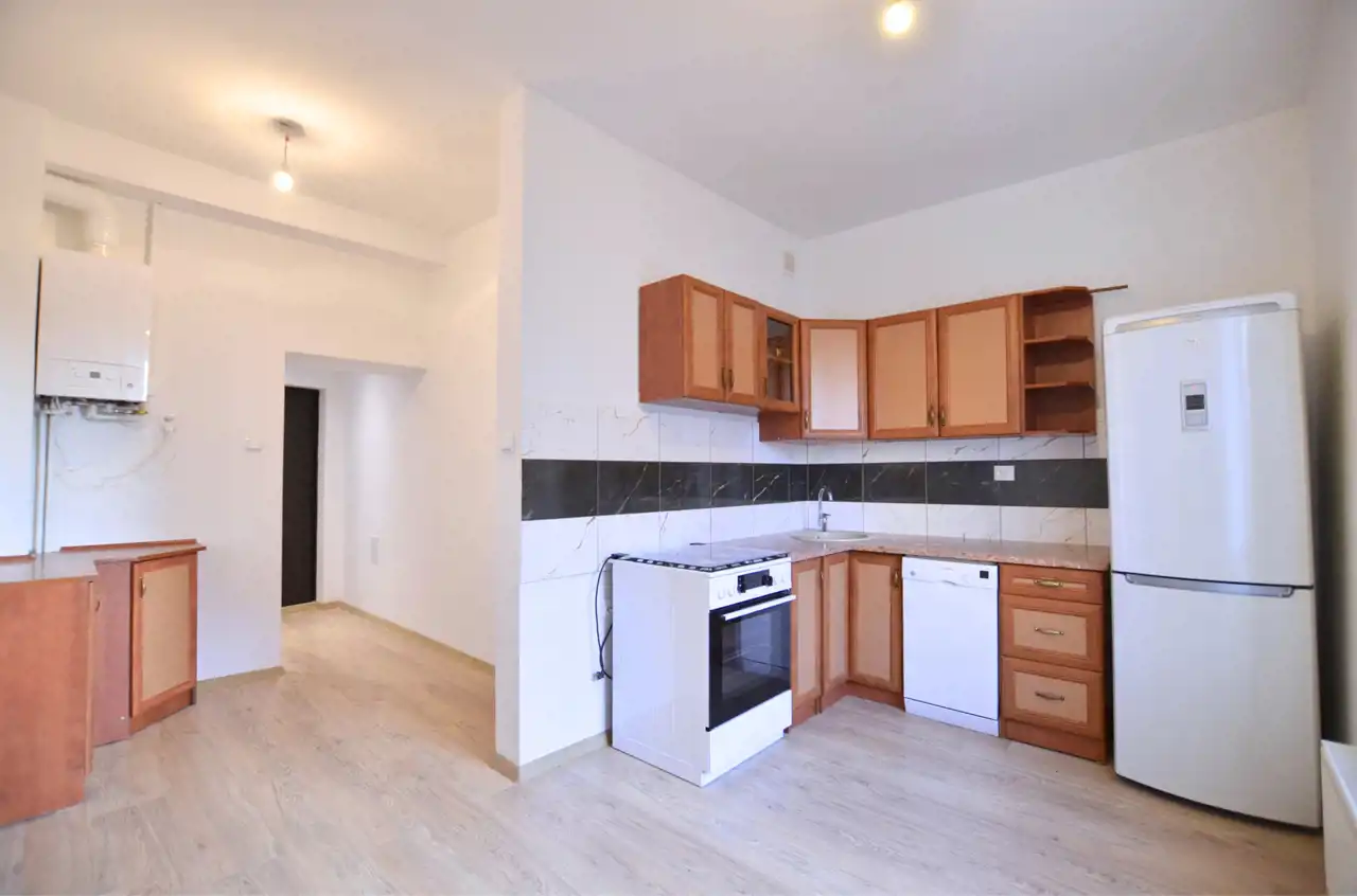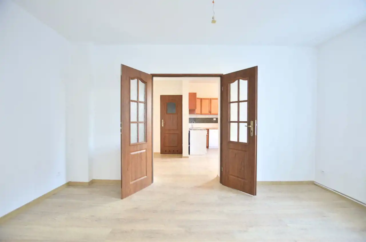 Nieruchomość o powierzchni użytkowej 44,96m2 znajduje się na parterze/ pierwszym piętrze i składa się z dużej i jasnej kuchni, salonu, sypialni, łazienki z WC oraz przedpokoju. Dodatkowo do mieszkania przynależy piwnica o powierzchni 1,4m2.