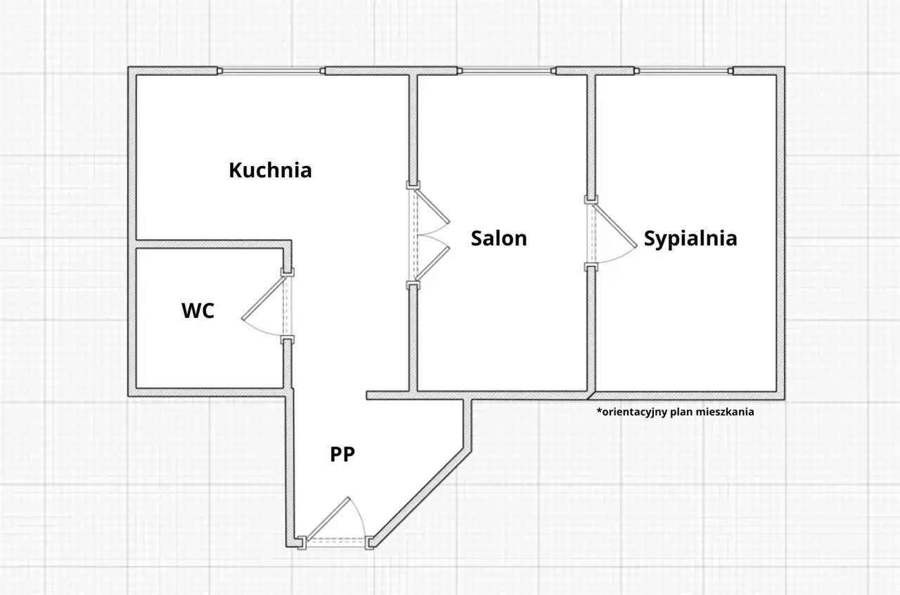 - Charakterystyka mieszkania 46.35 m2, 2 pokoje