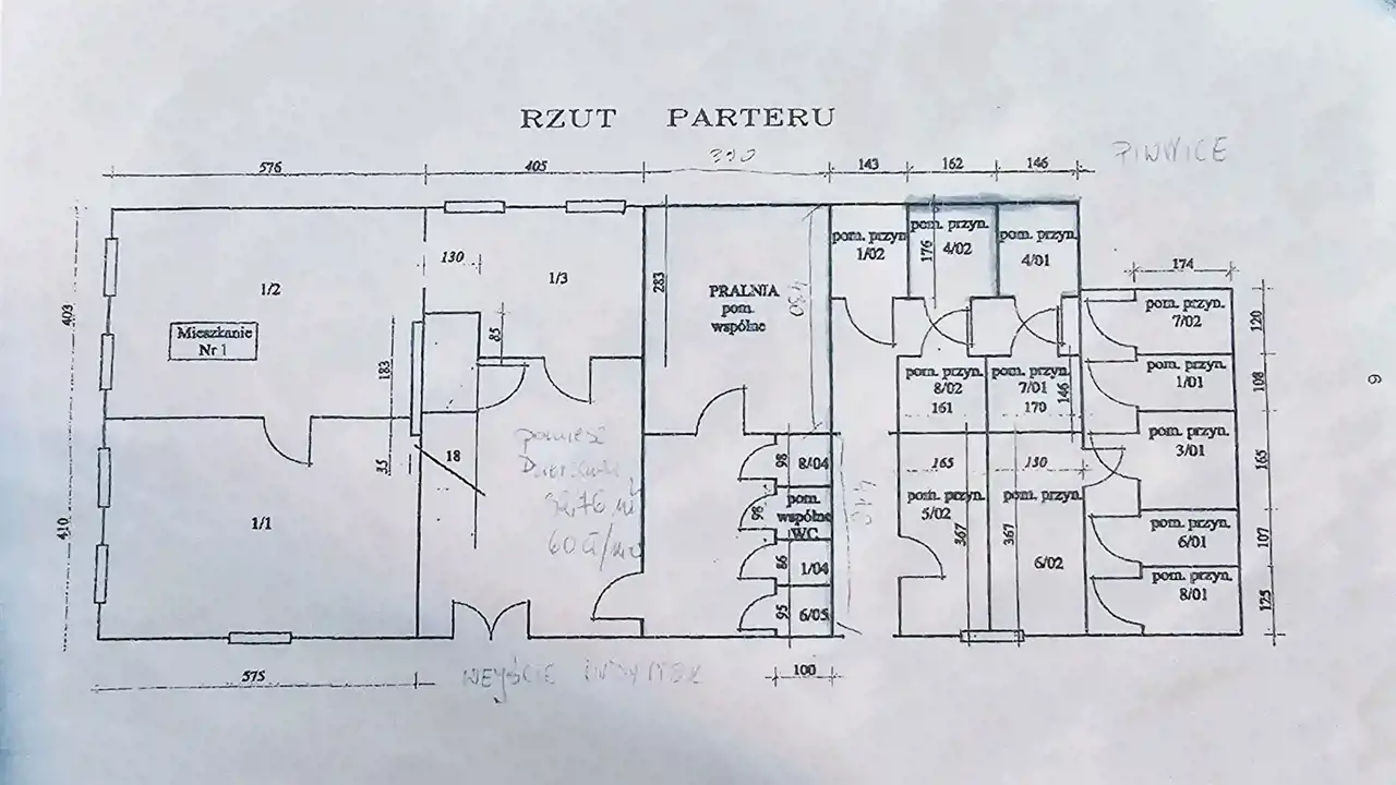 Dodatkowo dzierżawione pomieszczenie na parterze ok 33m2 w cenie 60zł miesięcznie. Możliwość wykupienia tego pomieszczenia przez nowego właściciela lub dalszej dzierżawy.