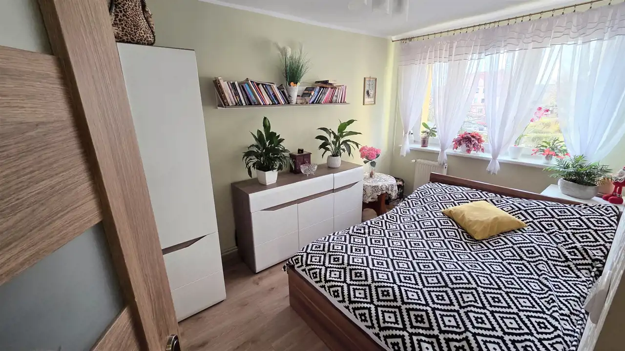 Przytulne mieszkanie, położone na drugim piętrze, w odnowionym bloku przy ulicy Szkolnej w Boguszowie-Gorcach. Składa się z przestronnego salonu z balkonem (poprzednio były to dwa pokoje), sypialni, kuchni, łazienki z wc i przedpokoju, o łącznej powierzchni użytkowej 48 m2. Do mieszkania przynależy piwnica.