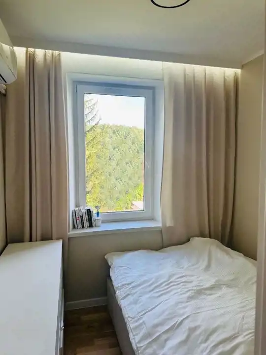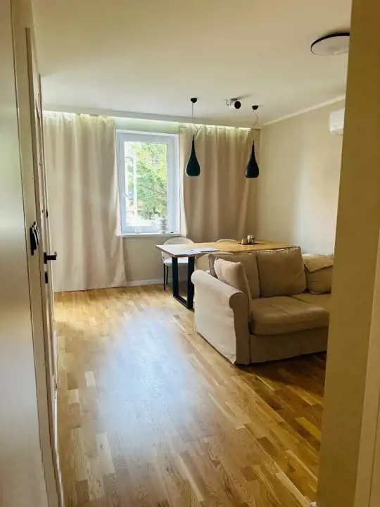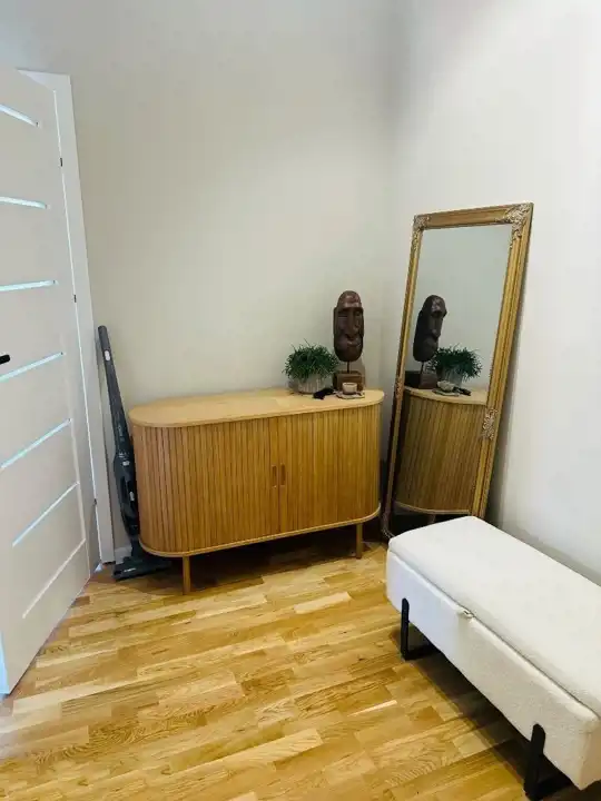 Mieszkanie o powierzchni 37 m składające się z obszernego przedpokoju, salonu z aneksem kuchennym oraz sypialni i łazienki z WC. Po wejściu do mieszkania znajduje się szafa zabudowana pod sufit w której się znajduje pralko suszarka i podgrzewacz wody.