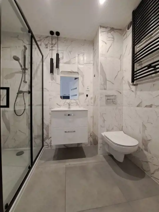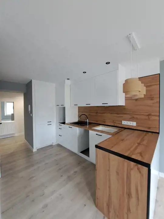 Mieszkanie po remoncie kapitalnym podczas, którego został zmieniony układ pomieszczeń na bardziej funkcjonalny.