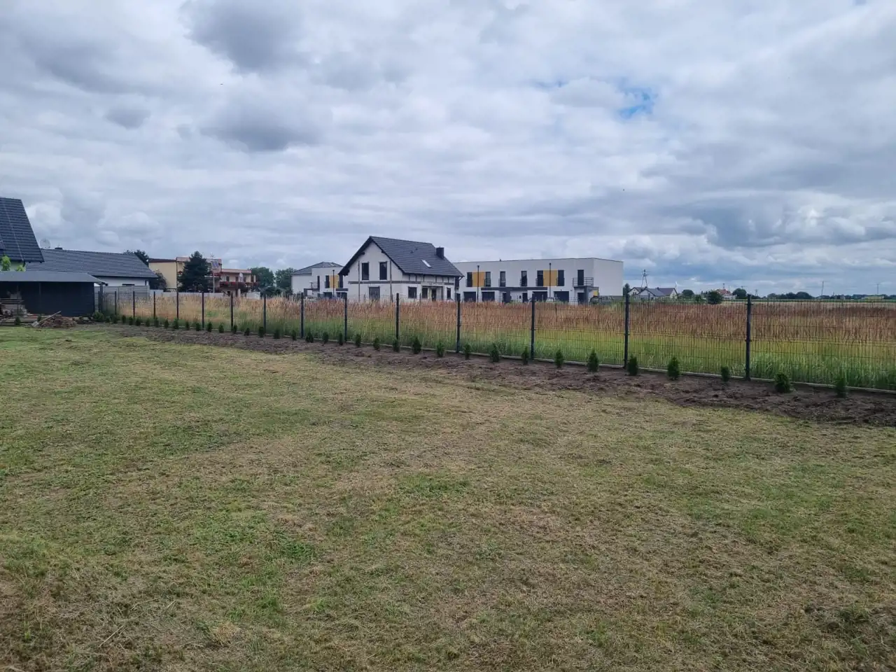 Działka jest w całości ogrodzona płotem z paneli metalowych oraz obsadzona tujami.
