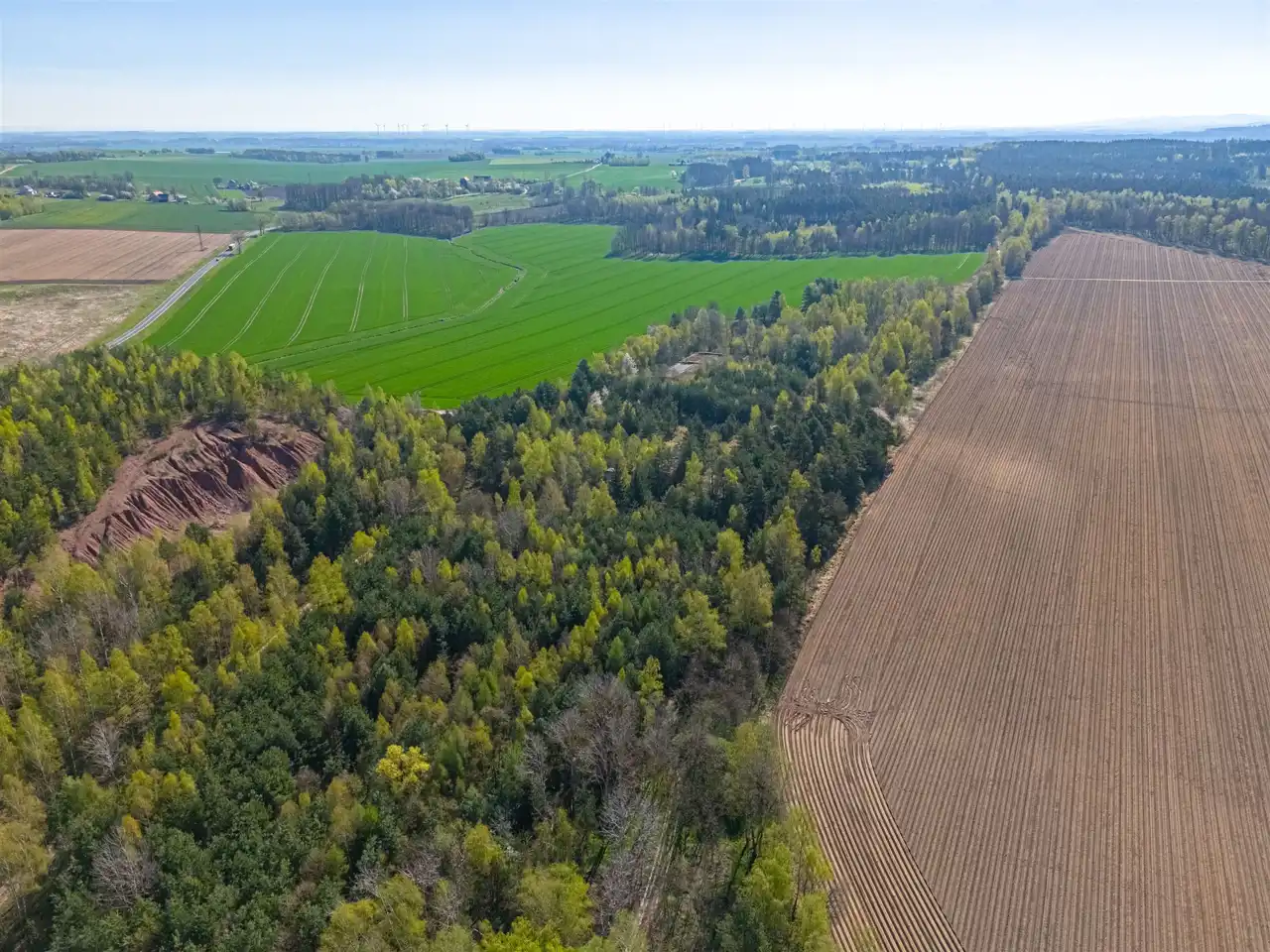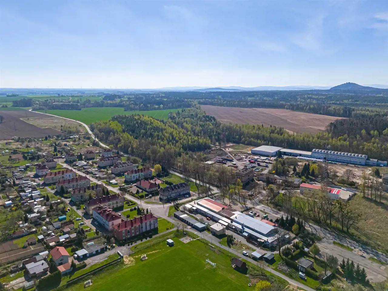Grunt inwestycyjny w gminie Warta Bolesławiecka na Podgórzu Kaczawskim w Sudetach.