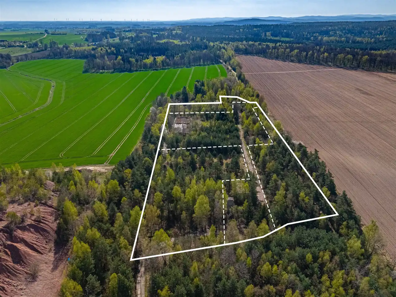 - Działka częściowo zagospodarowana, częściowo zalesiona, trapez