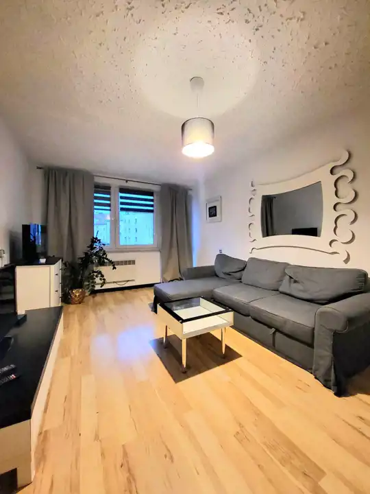 Mieszkanie jest do remontu. Na podłogach panele i płytki, okna PCV, ogrzewanie elektryczne, ciepła woda z pieca gazowego 1-funkcyjnego, niskie koszty utrzymania, czynsz w kwocie 300zł.