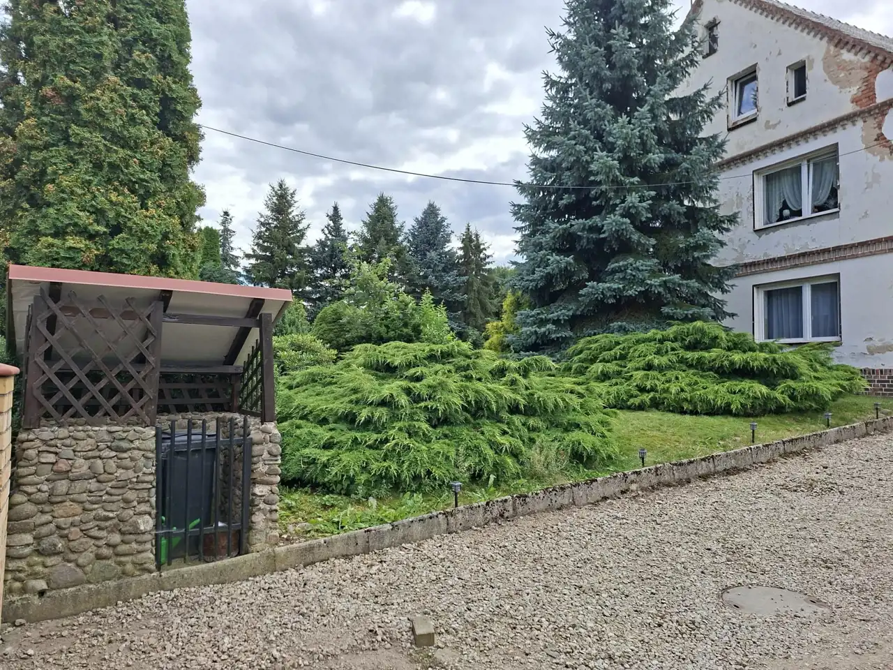 Budynek mieszkalny pokryty dachówką ceramiczną, na parterze część pomieszczeń wymaga remontu, składa się z:
