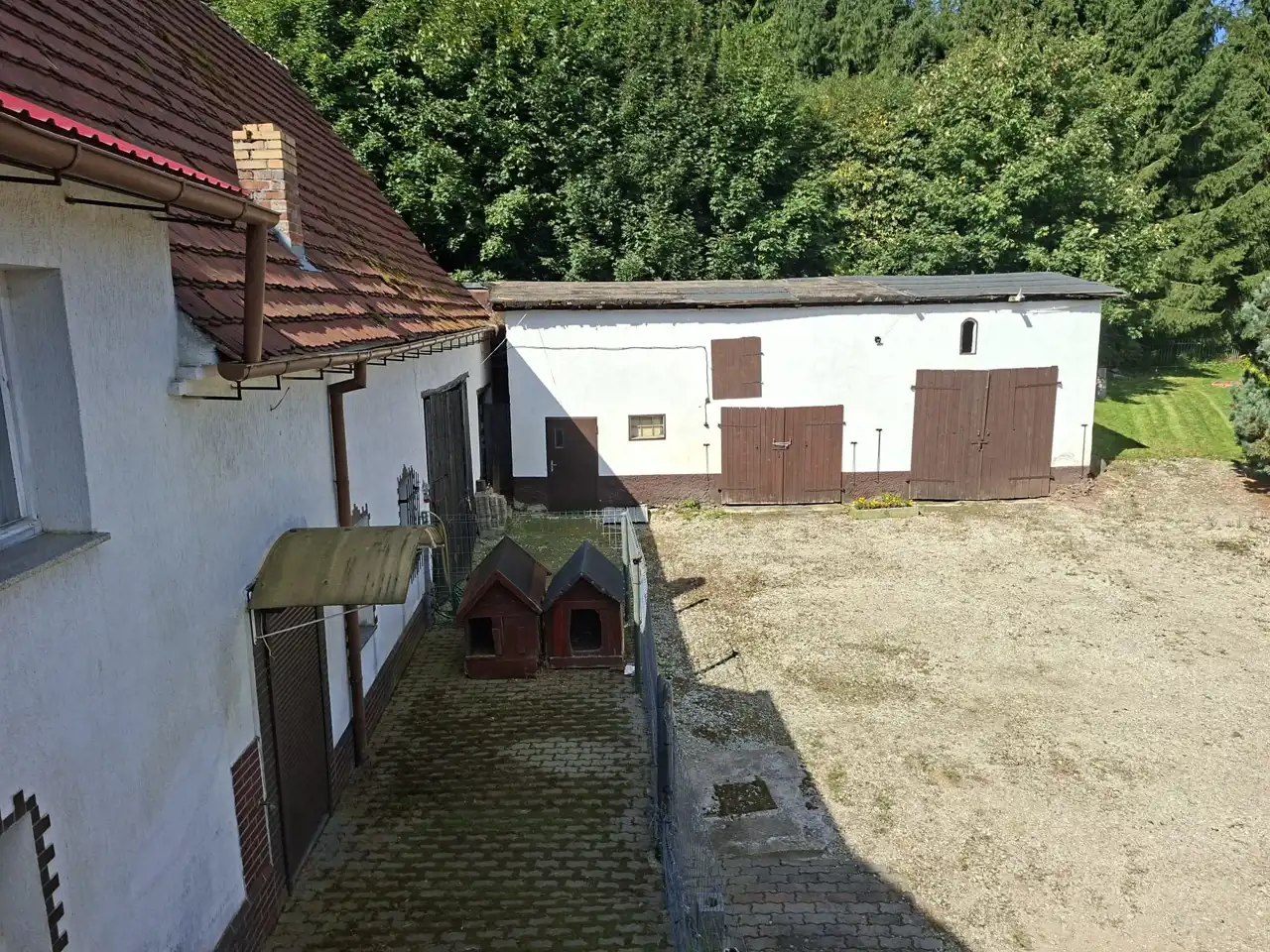 Stodoła razem ze spichlerzem o pow. ok 225 m2. Dwa dojazdy do nieruchomości. Ogrodzenie kute oraz murowane.