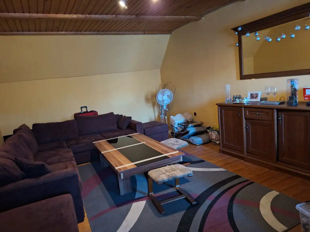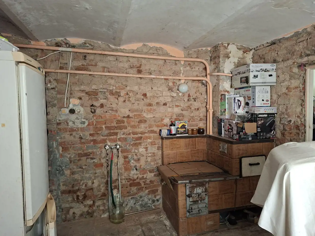 - hol (17,52m2), pokój (24,65m2), kuchnia do remontu (14,36m2), łazienka do remontu (4,46m2), pokój (17,09 m2), spiżarnia (8,52m2), wc (1,19m2) oraz kotłownia (2,96m2).