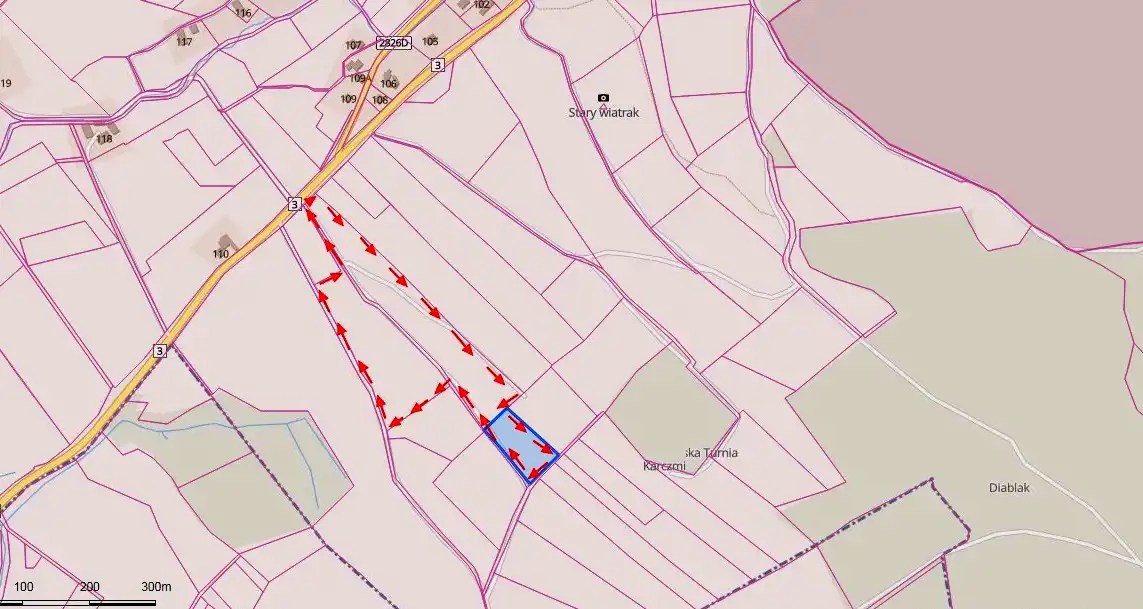 - Media Woda: brak; Kanalizacja: brak; Prąd: jest; Gaz: brak
