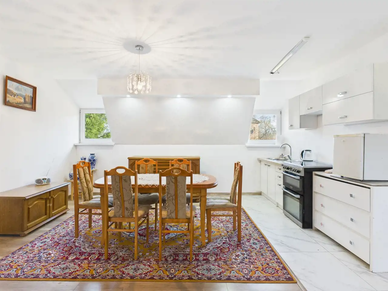 - Salon z aneksem kuchennym o pow. 27,8 m2