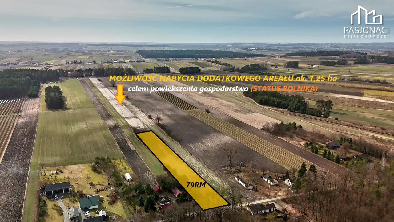To miejsce ma bardzo przyjemny, naturalny charakter. W najbliższym otoczeniu znajdują się pola uprawne, zadrzewienia, lasy oraz luźna zabudowa siedliskowa i mieszkaniowa. Taka lokalizacja przypadnie do gustu osobom, które cenią ciszę, przestrzeń, prywatność i kontakt z naturą, a jednocześnie chcą mieć możliwość sprawnego dojazdu do większych miejscowości.