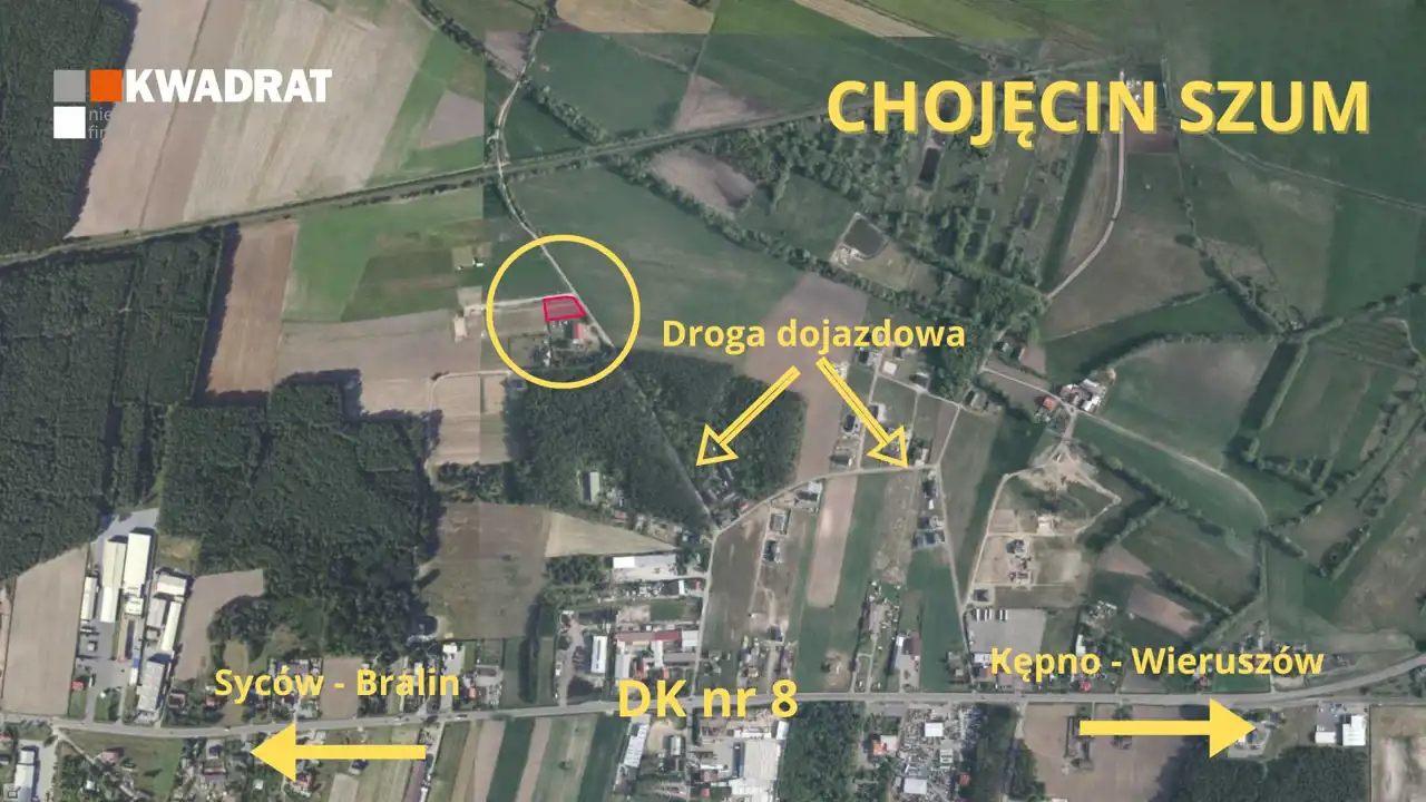 KWADRAT prezentuje na sprzedaż działkę budowlaną w miejscowości Chojęcin Szum. Działka położona jest w cichej i spokojnej okolicy, a zarazem w dobrej komunikacji z centrum Kępna i zjazdem na drogę ekspresową S8. Droga wewnętrzna przy, której znajdują się działki prowadzi bezpośrednio do drogi gminnej – asfaltowej.