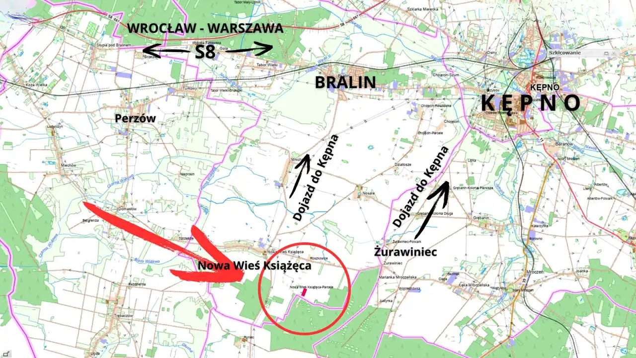 KWADRAT prezentuje na sprzedaż działki budowlane położone w miejscowości NOWA WIEŚ KSIĄŻĘCA gm. Bralin. Nieruchomości znajduje się w odległości ok. 11 km od Kępna (14 min samochodem) oraz ok 7 km od Bralina.