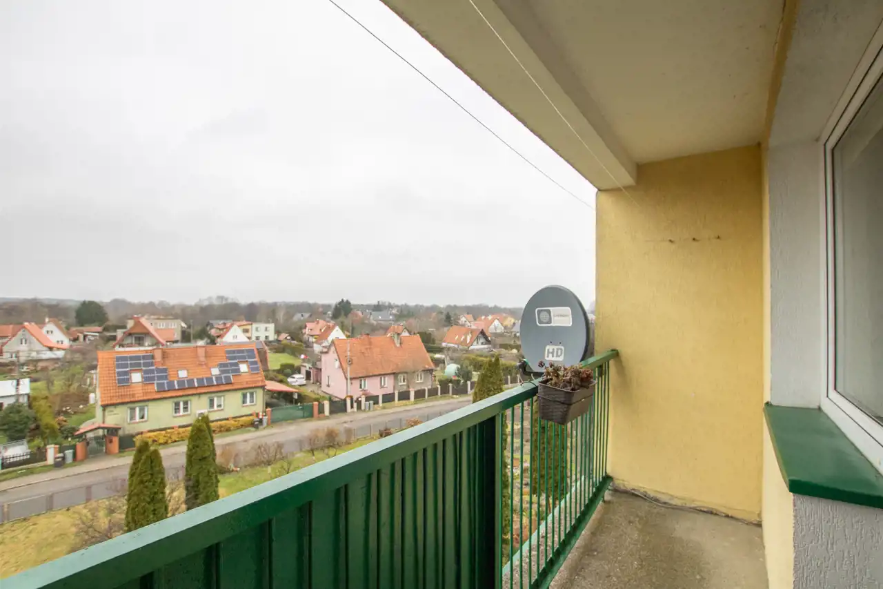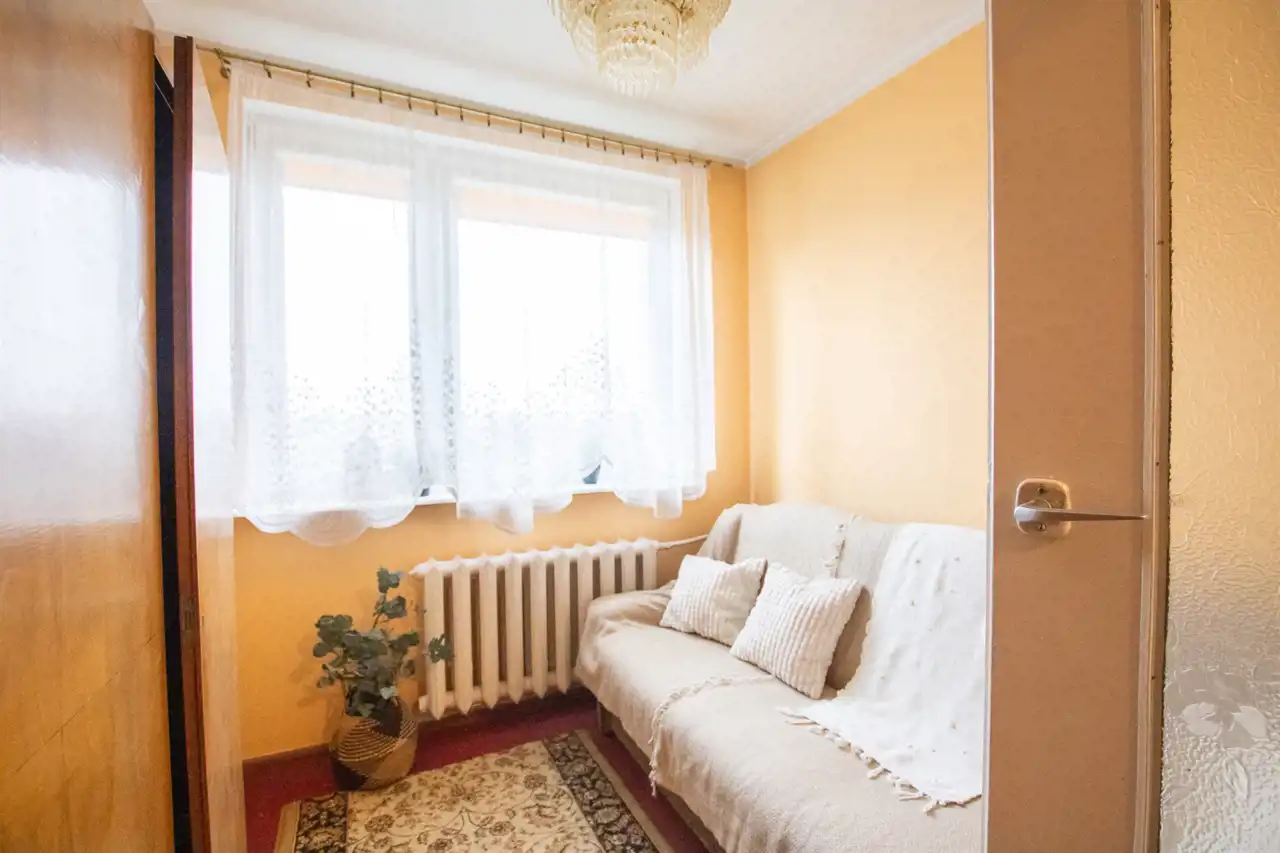 Mieszkanie o powierzchni 58 m² usytuowane jest na trzecim piętrze bloku i podzielone zostało na trzy pokoje, widną kuchnię, łazienkę która również posiada okno, oraz osobną ubikację. Balkon zapewnia piękne widoki na przyległe tereny.