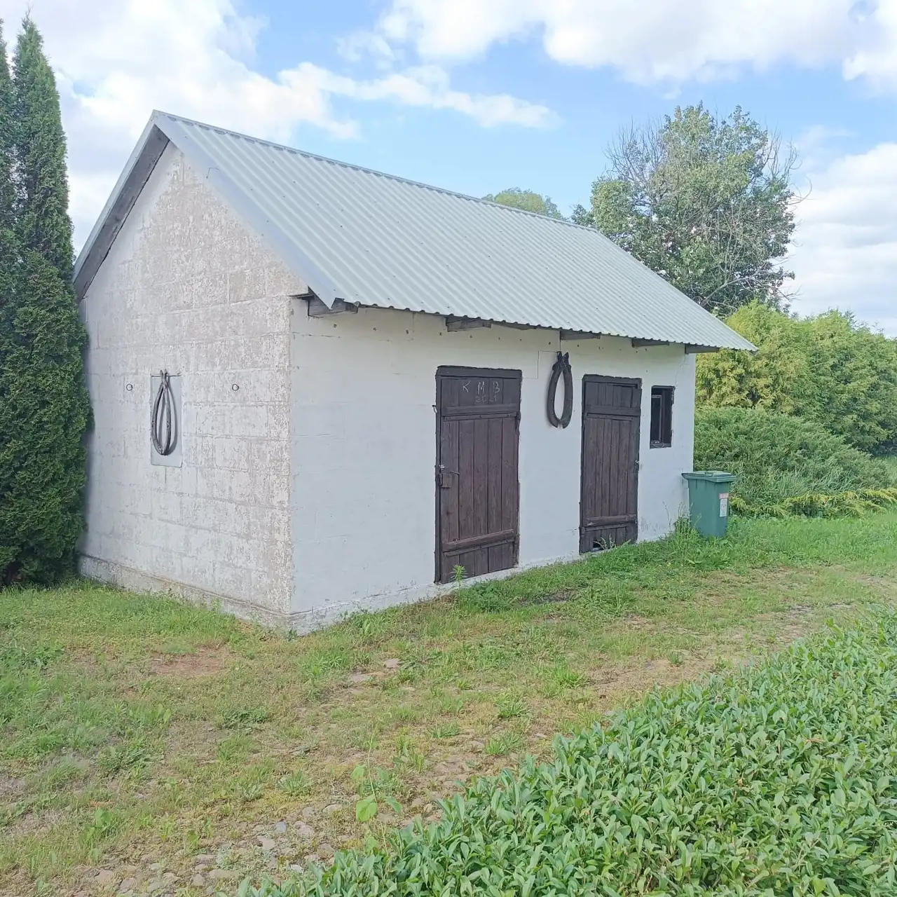 Zagospodarowana działka o powierzchni 5000m2. Na działce znajdują się również drewniana stodoła, murowana obora oraz budynek gospodarczy. Media: wodociąg, prąd, szambo własne. Dojazd drogą asfaltową.
