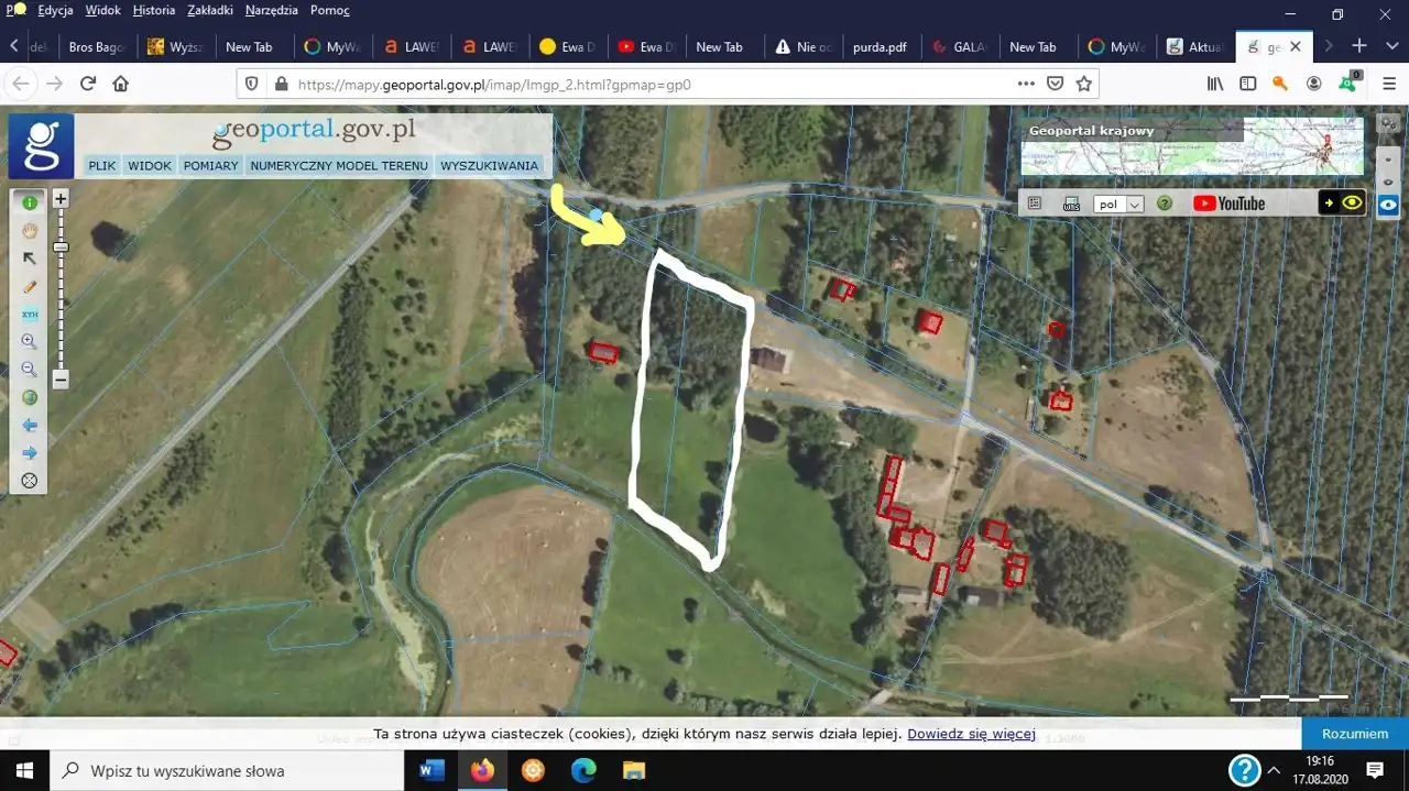 - Działka Niezagospodarowana, częściowo zalesiona, prostokąt