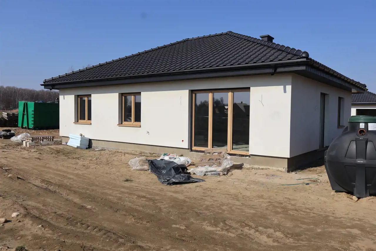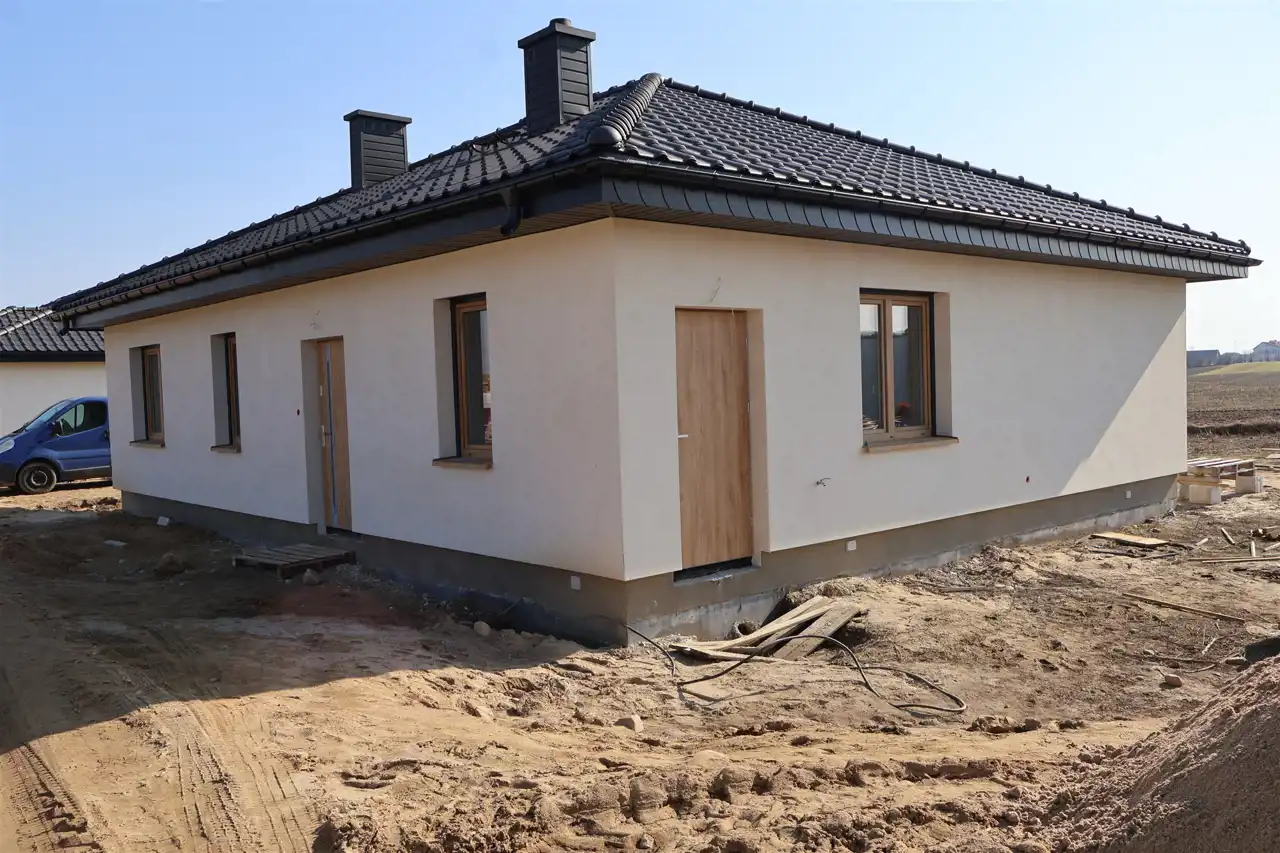 W cenie dom oferowany jest w standardzie deweloperskim niepełnym, obejmującym: