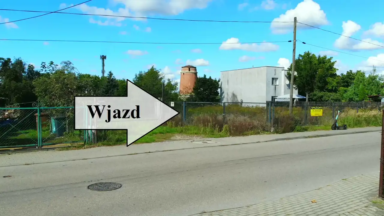 Teren ogrodzony, zjazd z ulicy Nowej, prawoskręt i lewoskręt.