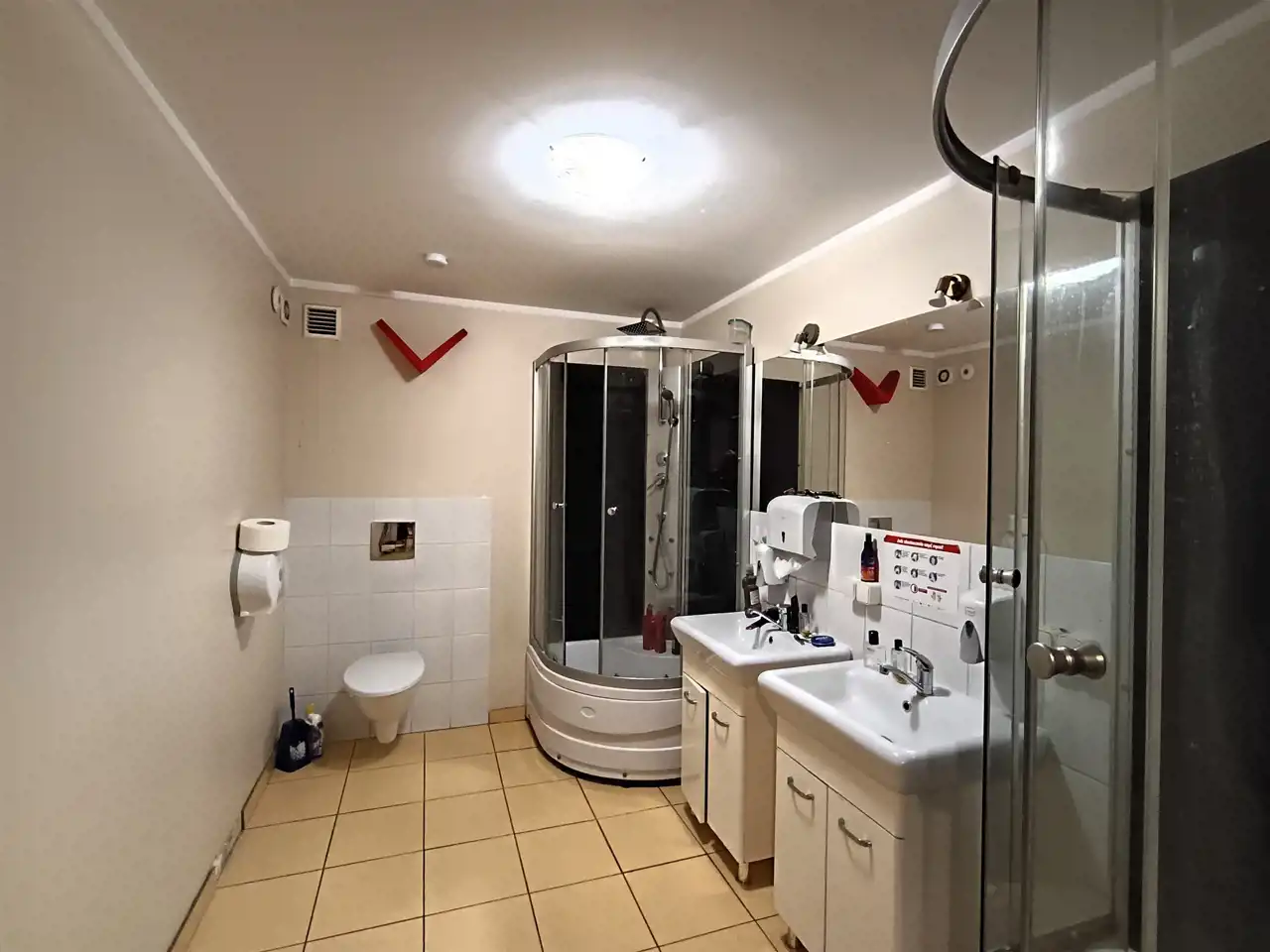 - 2 łazienki z wc z kabinami prysznicowymi o powierzchni:
