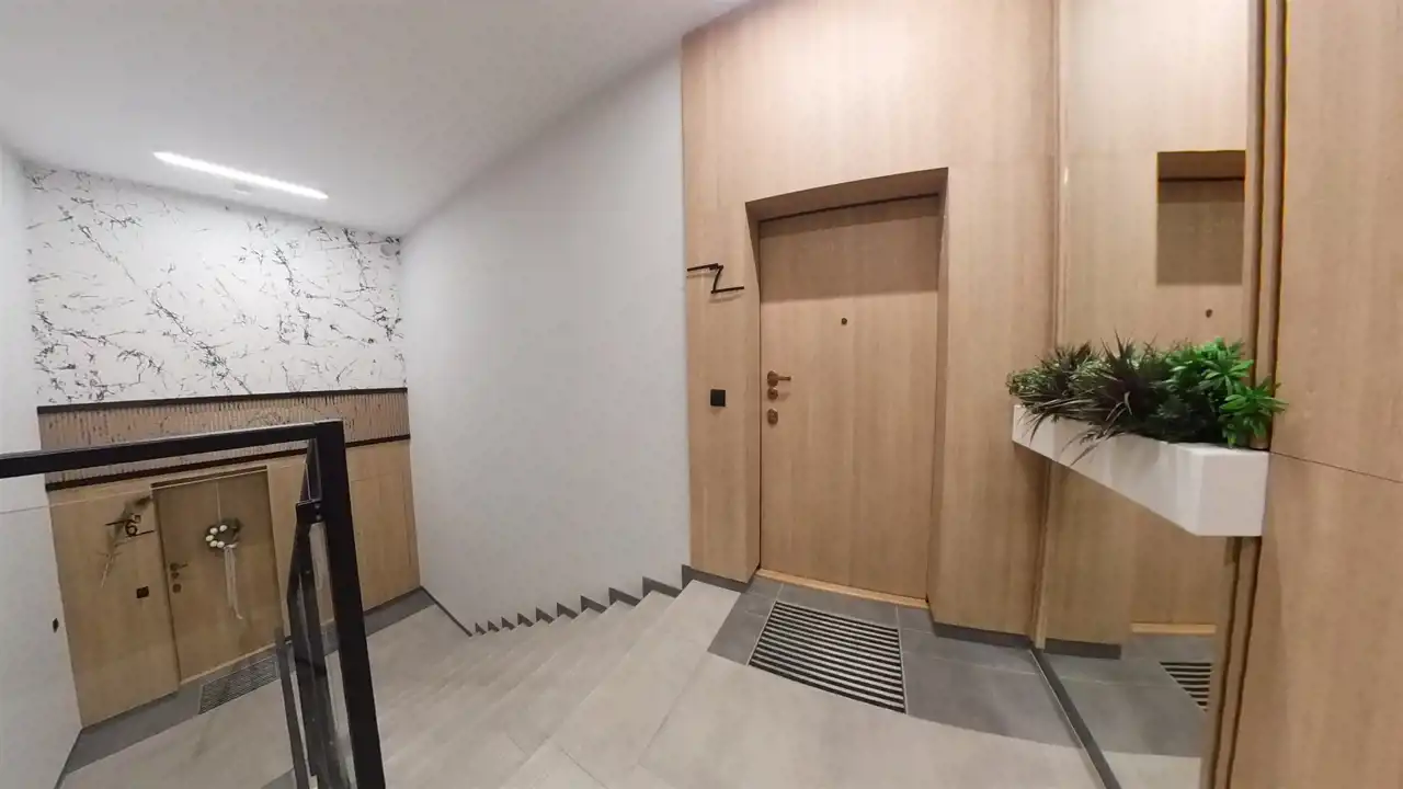 Składa się z 2 pokoi – salonu z aneksem kuchennym i dużym balkonem, sypialni, łazienki i garderoby.