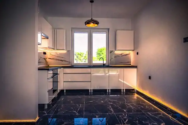 Odpowiedź: Dom posiada gazowe ogrzewanie podłogowe, oraz okna z trzema szybami. Budynek ocieplony 15 cm styropianem