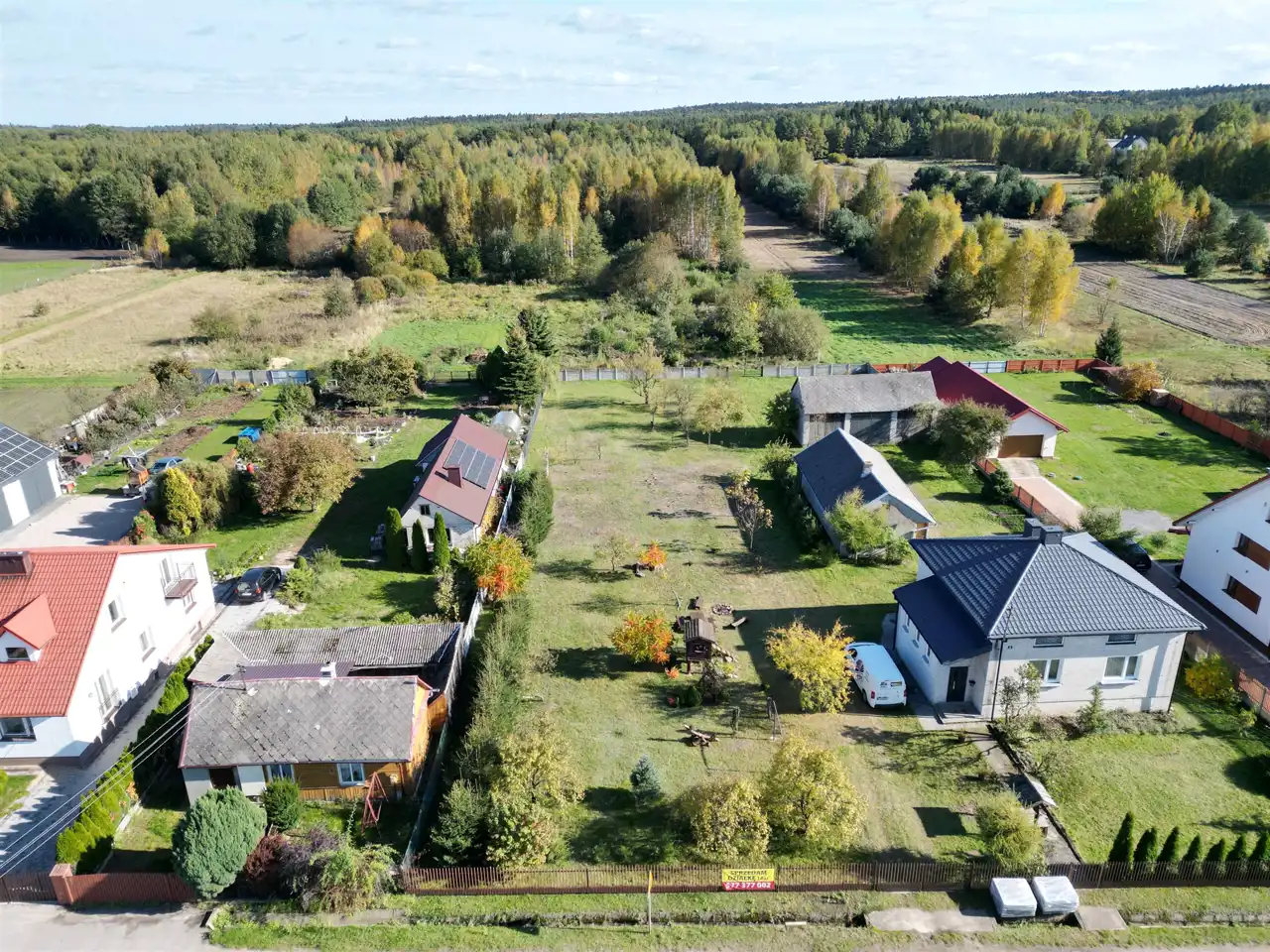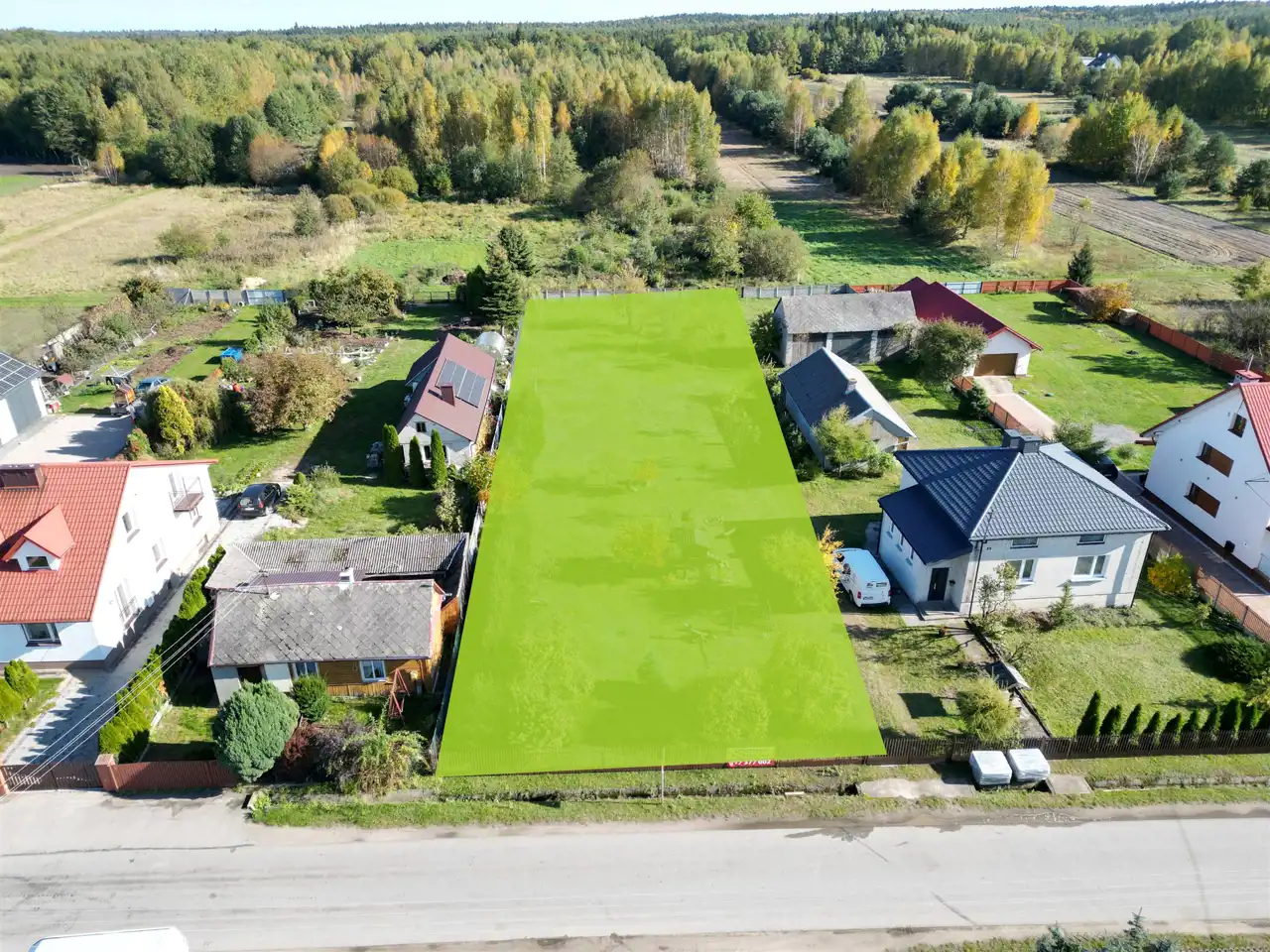 Nieruchomość położona w pierwszej linii w stosunku do asfaltowej drogi gminnej. Działka płaska, w kształcie prostokąta, zagospodarowana, ogrodzona, położona pośród terenów zielonych i zabudowy jednorodzinnej.